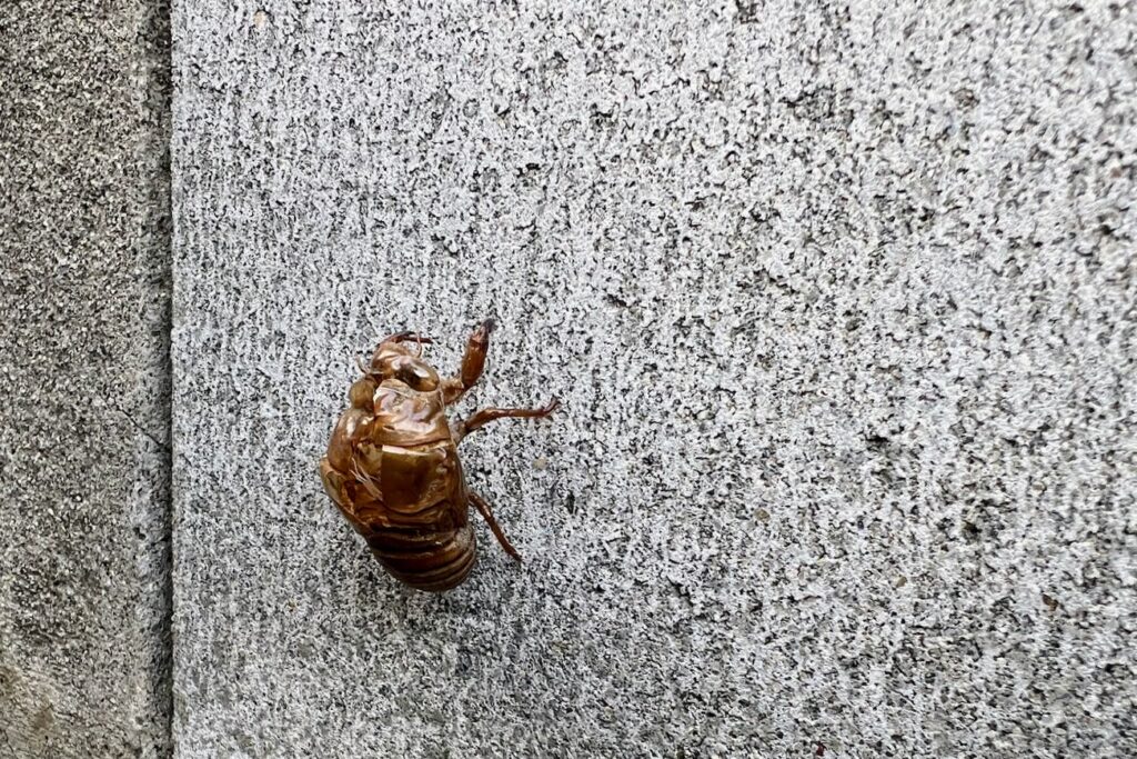 店先でセミの抜け殻を発見。