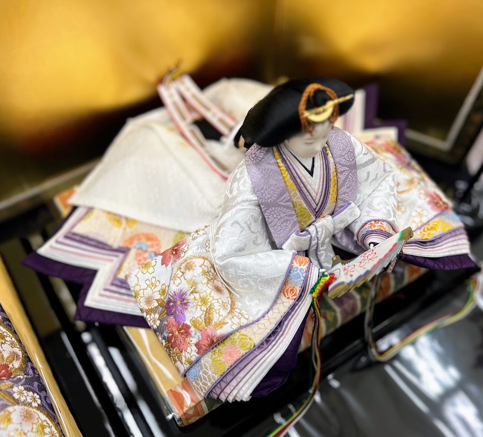 正面からご覧いただくと、親王台には昔ながらの繧繝模様(うんげんもよう)が見えますが、これは昔から身分の高い人のみに許されていた大変縁起の良い模様というのも、皆さんあまりご存知ないかもしれませんね。
