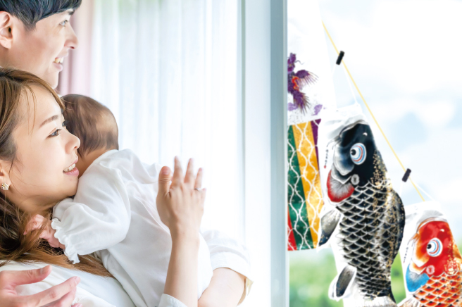 窓辺の狭いスペースでも、ベランダ・中庭の限られた空間でも、鯉のぼりを飾り付けて華やかにお祝いできます♪