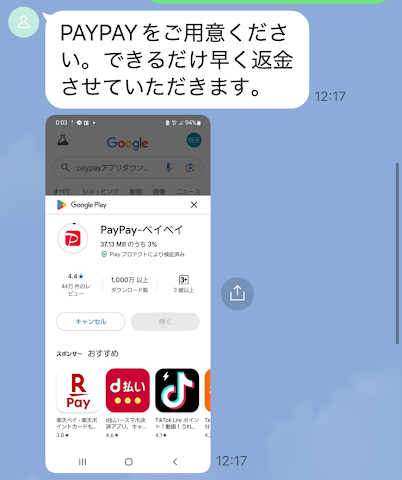 なので「PayPayのコードやリンク、PayPayの口座開設の話しが来たら絶対に辞めて警察に相談してください」との事です。