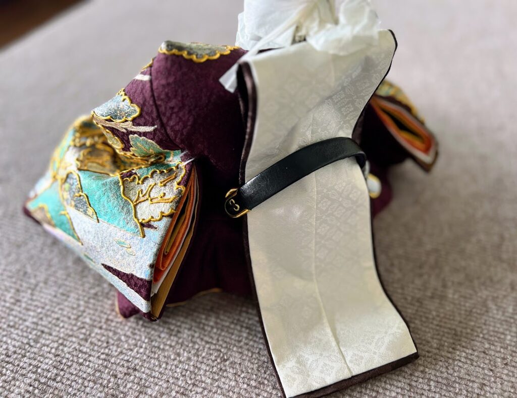 埼玉県さいたま市のY様より、男雛の裾と石帯の修理を承りました。