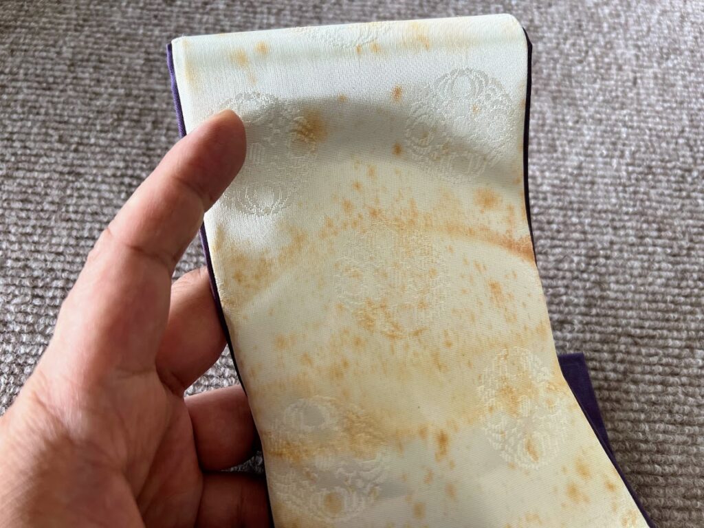 良い品ほど良い材料を使用しますので、どうしてもカビやシミに対してデリケートになってしまいますので、しまう時にもそれなりにしていただく必要はありますが、どうしてもこの裾や石帯はカビやシミが発生しやすい部分ですね。