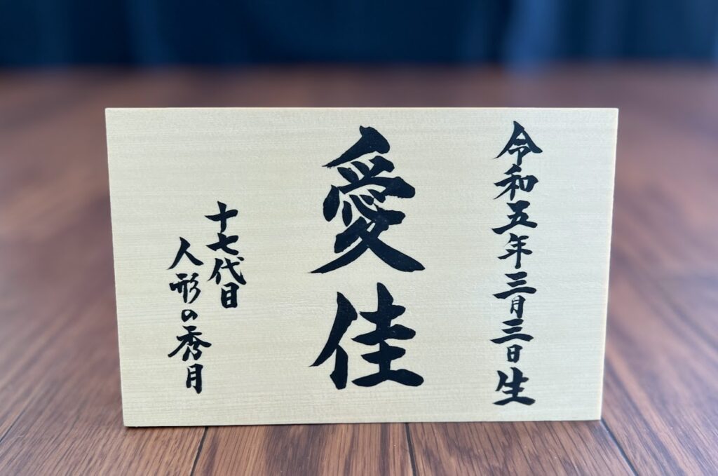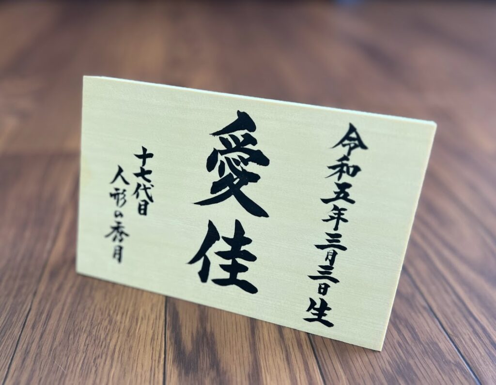 毎年ご好評いただいております、秀月オリジナル オルゴール付 お名前立札(木札)。
