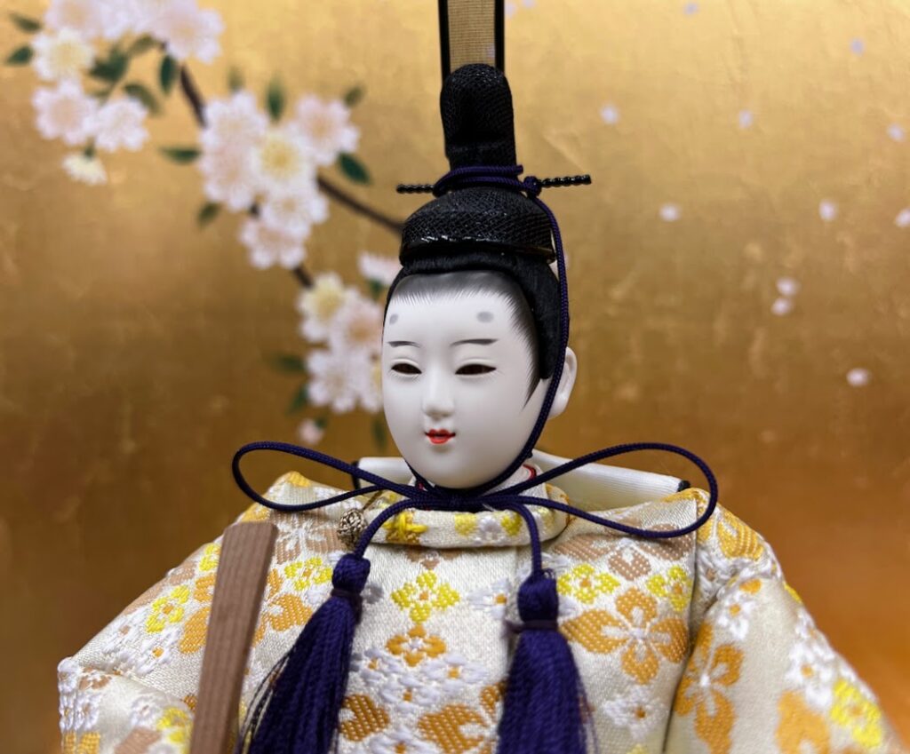 もちろん男雛も同じで、優しくも美しいお顔でお着物は少し明るめにし、一対で落ち着いた華やかさを持たせてあります。