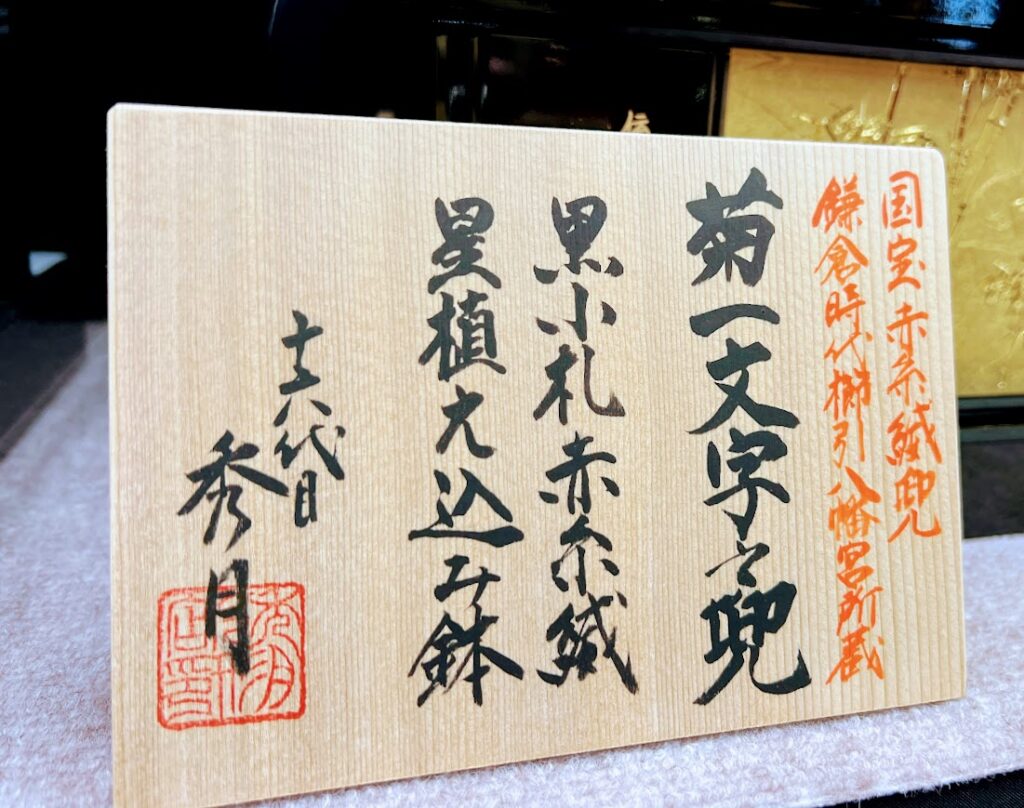 浜松市中央区のY様より、国宝 赤糸縅 櫛引八幡宮所蔵 菊一文字之兜高級収納箱飾りをお選びいただきました。