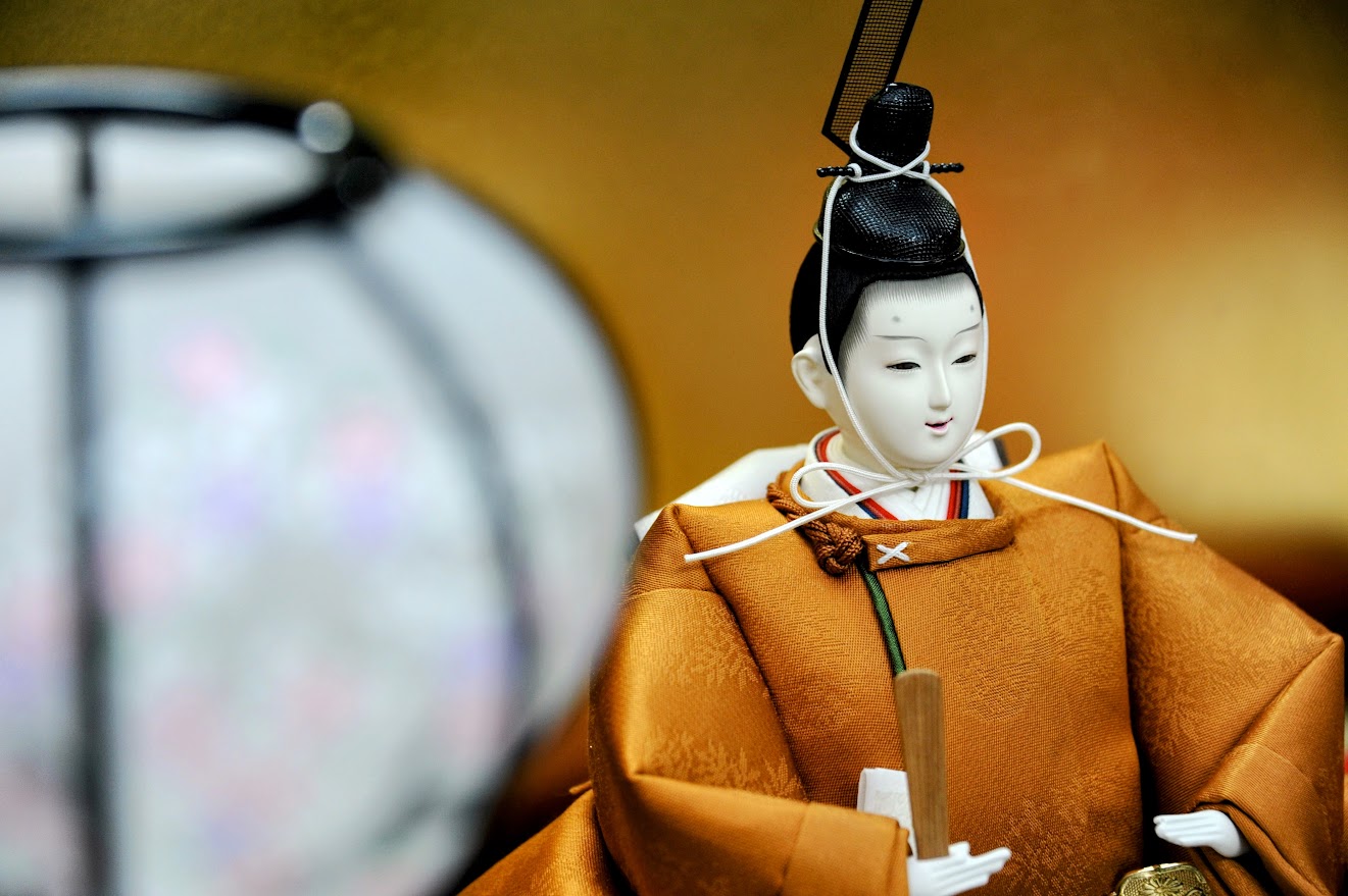 天皇のみがお召しになられる、黄櫨染御袍の美しいお雛様。