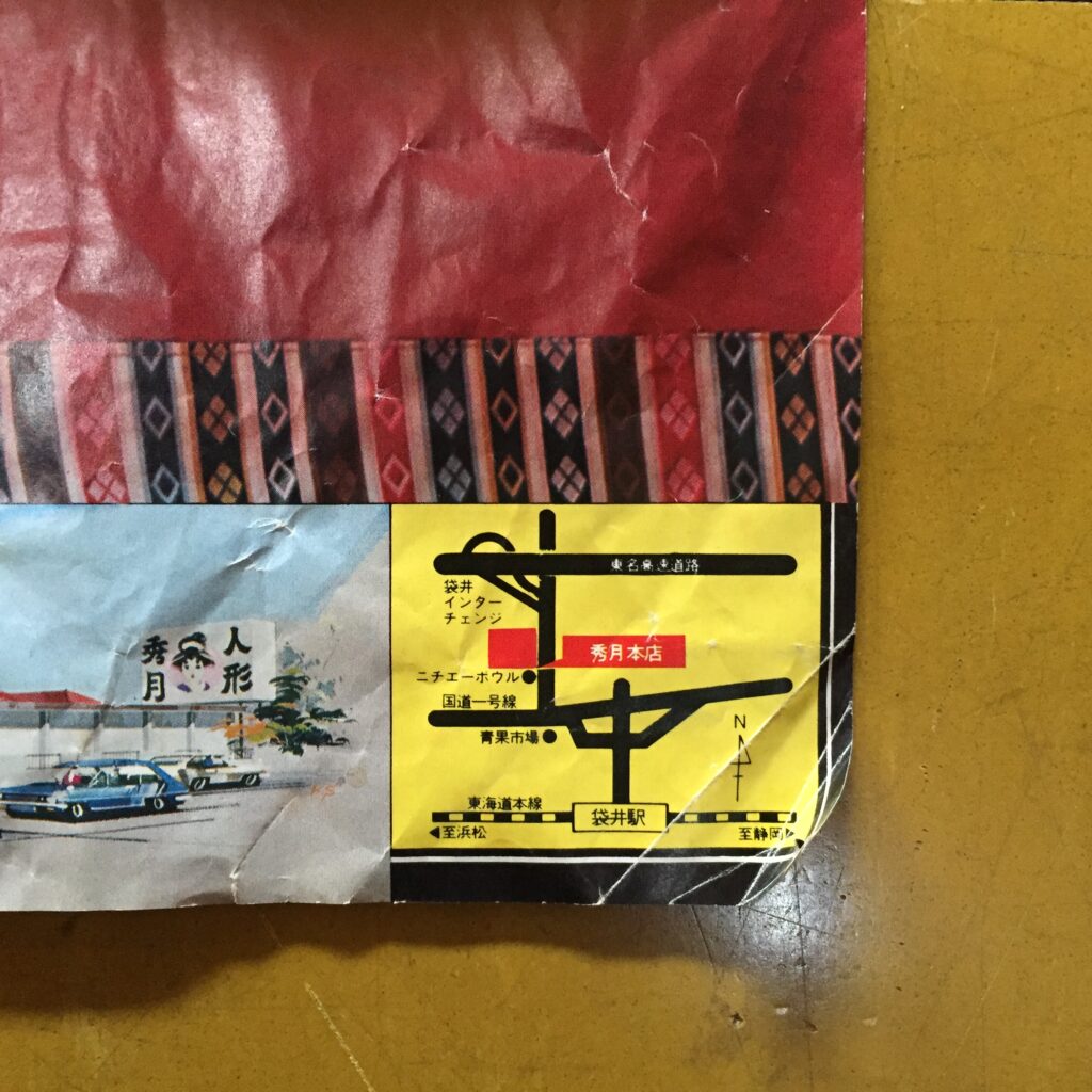 こちらは50年前のチラシを、別のお客様がお持ちいただいたのですが、左が工房と事務所で右側の平屋が店舗です。