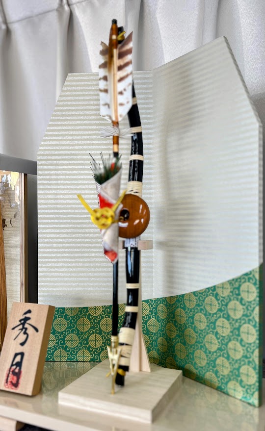 お飾りの時期の後は、弓矢を取り除いて一輪挿しの生花などを生けていただくと、それはそれでまた違う大変美しいお飾りへと変化しますので。
