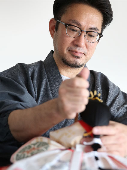 そして昭和四十七年、次男である大久保 暁は独立し、それまでの人形にはない独自の感性と素材、技をもって、雛人形の制作活動を始めました。
