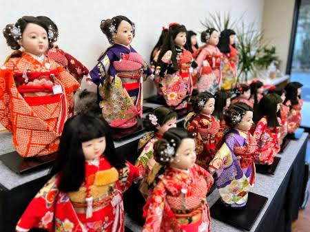 その後、明治・大正時代は京都と東京で盛んに作られていましたが、昭和2年にアメリカから「日本の雛祭りに一緒に飾ってほしい」と送られてきた友情人形12,739体のお礼に、市松人形58体をアメリカの各都市に贈ったことがきっかけで、市松人形は一躍有名になりました。