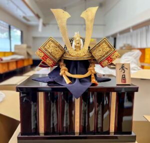 大きさはスーツケースに入る大きさという事で、小振りで派手にせずあえて控えめな兜を制作いたしました。