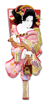 江戸時代の後期より、この板に押絵の技法を用いて歌舞伎役者の姿を付けるようになると、羽子板は一段と華やかさを増し、一般にも広く人気を集めるようになりました。